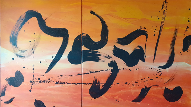 Diptyque - Encre de chine et acrylique sur toile de lin tendue sur deux châssis bois mesurant au final 173x100 cm