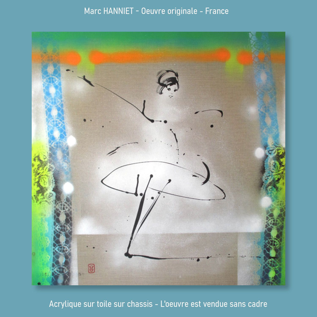 Cet exemplaire est une pièce unique sur toile tendue sur châssis de format 80x80 cm. Elle vous sera expédiée par Colissimo. Si vous en prenez livraison à mon atelier ou sur une exposition, il est possible de l'obtenir avec un encadrement en bois de type caisse américaine double vague.
